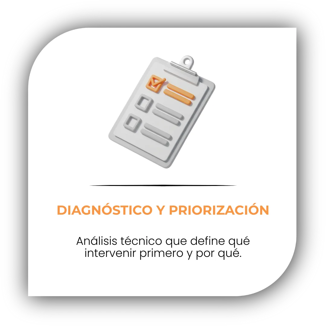 Incluye inspección técnica en sitio, diagnóstico, priorización, plan anual de mantenimiento, cotización por rubro y ejecución programada